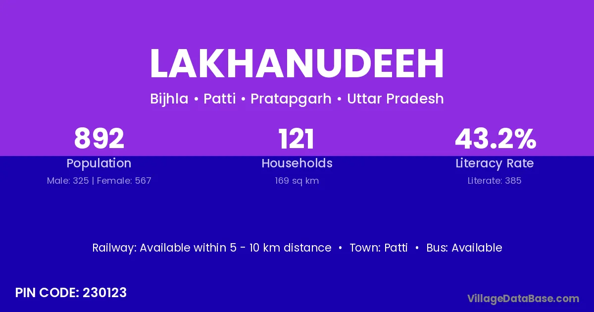 There are approximately 121 households in Lakhanudeeh village.