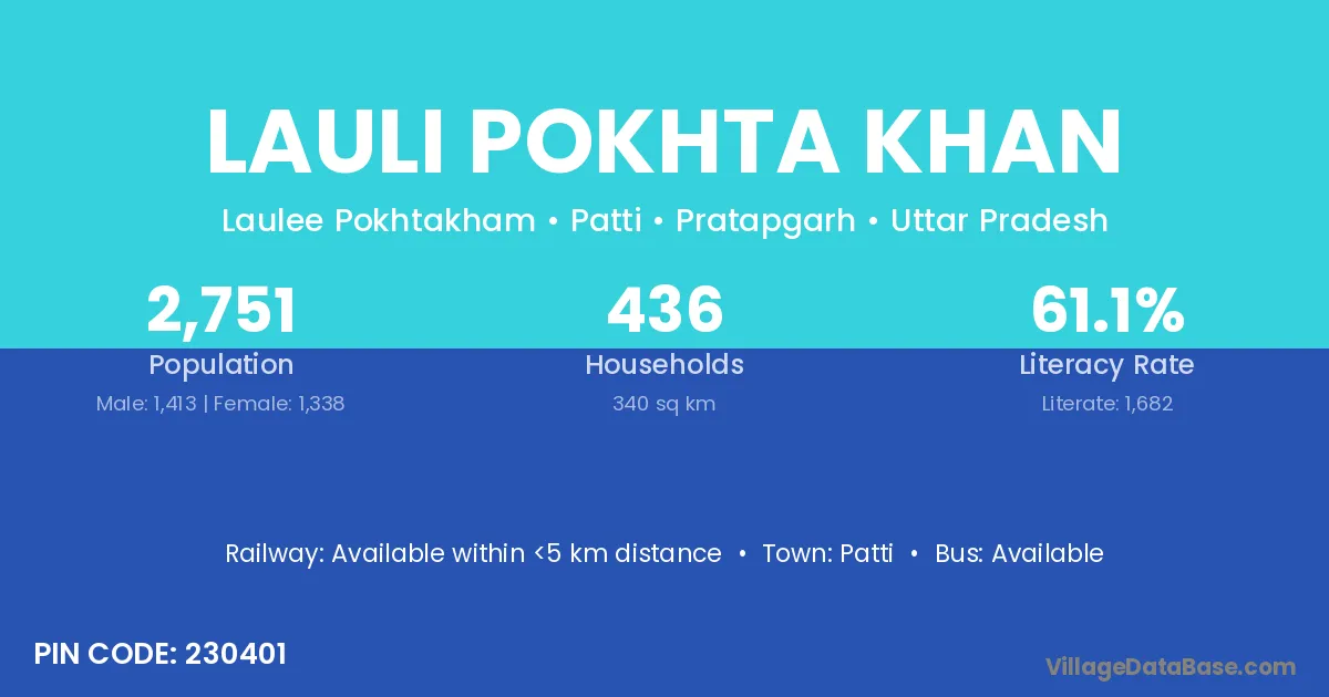 Lauli Pokhta Khan village is located in the Patti Tehsil of the Pratapgarh district in Uttar Pradesh .