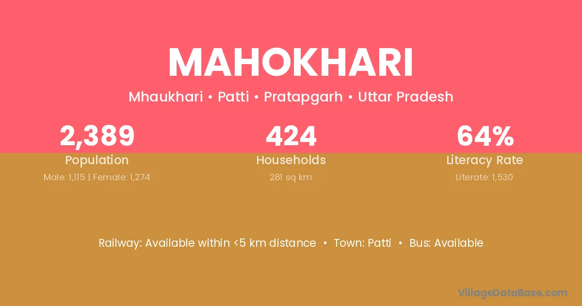Mahokhari village is located in the Patti Tehsil of the Pratapgarh district in Uttar Pradesh .