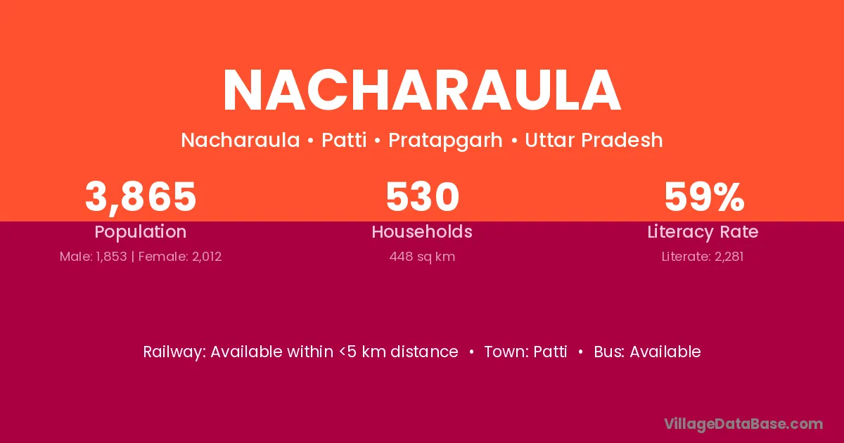 Nacharaula village has a total population of 3,865 people, of which 1,853 are males and 2,012 are females.