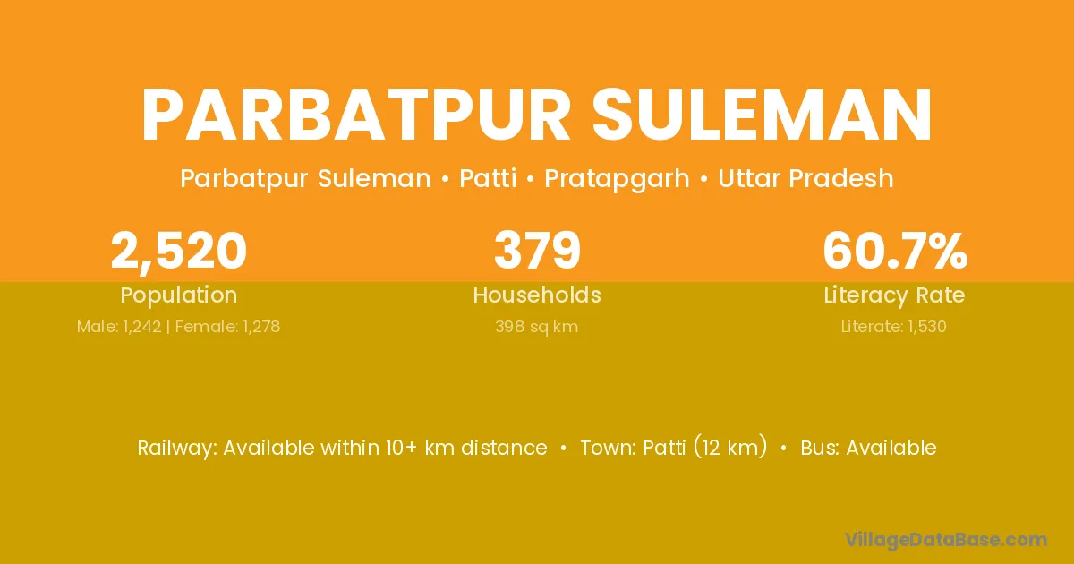 Parbatpur Suleman village is located in the Patti Tehsil of the Pratapgarh district in Uttar Pradesh .