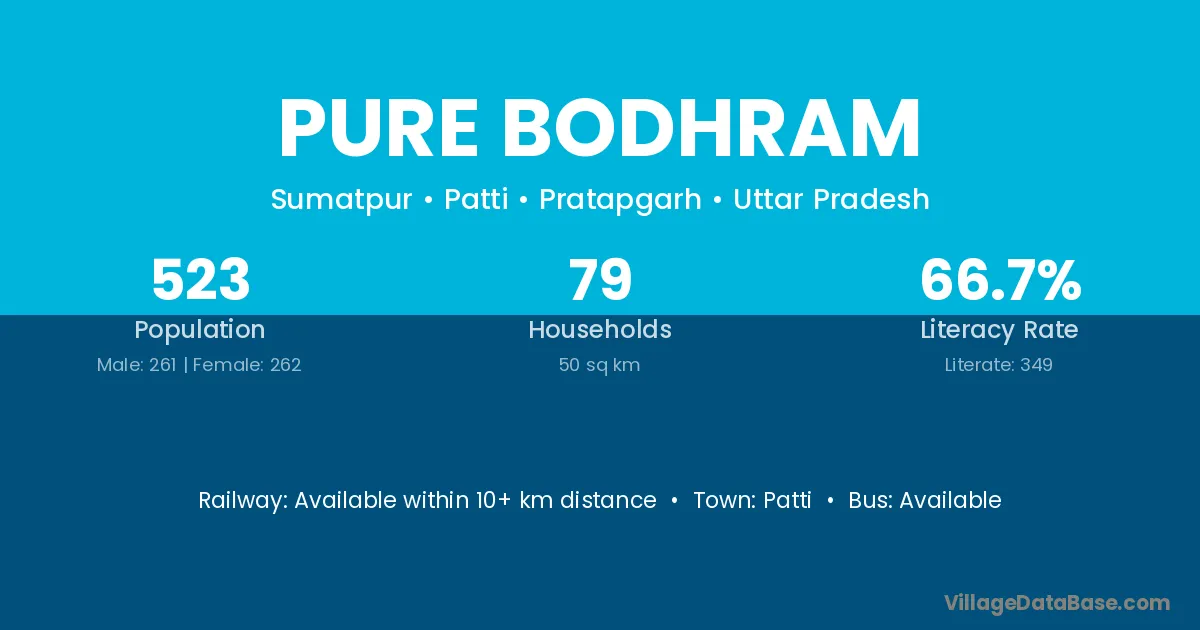 Pure Bodhram village has a total population of 523 people, of which 261 are males and 262 are females.