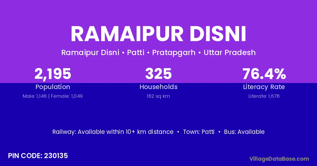 According to Census 2011 information, the village code of Ramaipur Disni village is 230135.