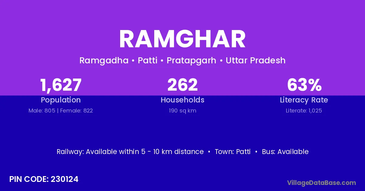 Ramghar village has a total population of 1,627 people, of which 805 are males and 822 are females.