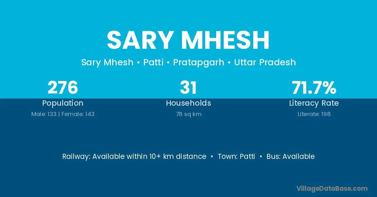 Sary Mhesh village is located in the Patti Tehsil of the Pratapgarh district in Uttar Pradesh .