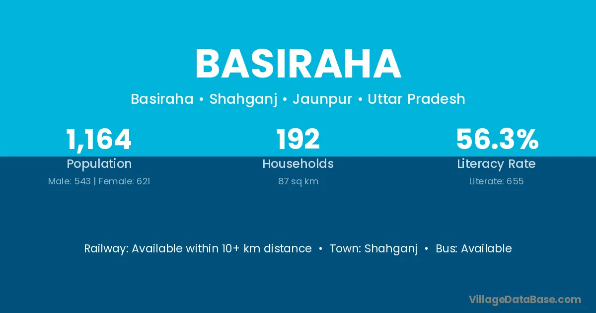 Basiraha village has a total population of 1,246 people, of which 625 are males and 621 are females.