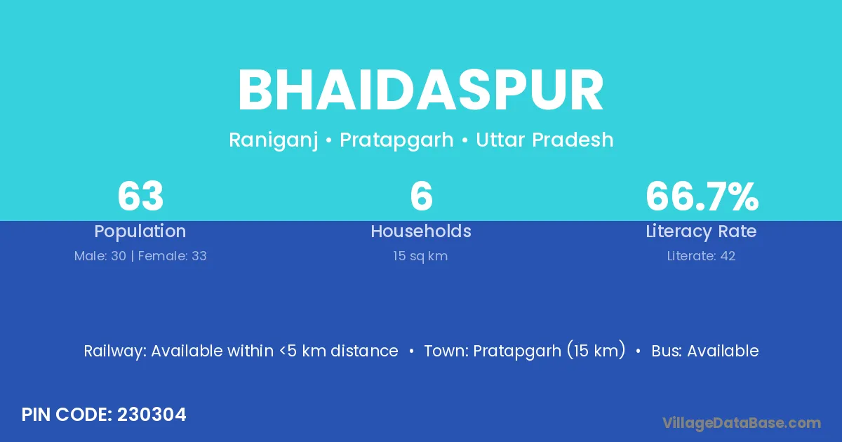 Pratapgarh (15 km) is the nearest town to Bhaidaspur village for major economic activities and is located approximately 15 km away.