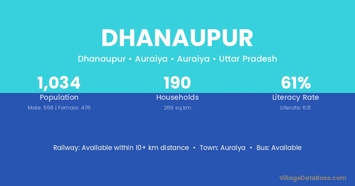 The literacy rate of Dhanaupur village is 63.57%. Male literacy stands at 74.47% and female literacy at 52.75%.