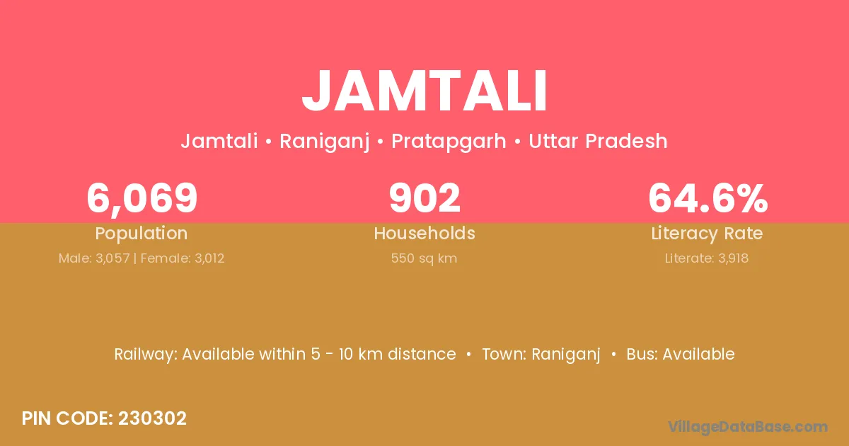 Jamtali village has a total population of 6,069 people, of which 3,057 are males and 3,012 are females.