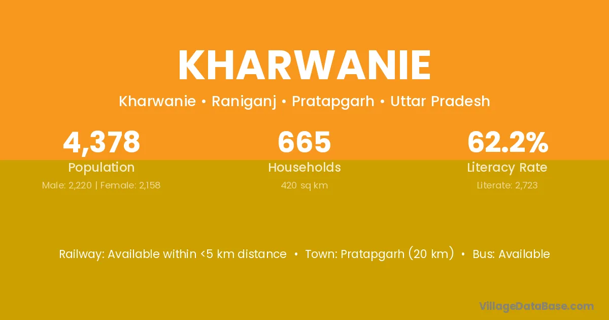 Pratapgarh (20 km) is the nearest town to Kharwanie village for major economic activities and is located approximately 20 km away.