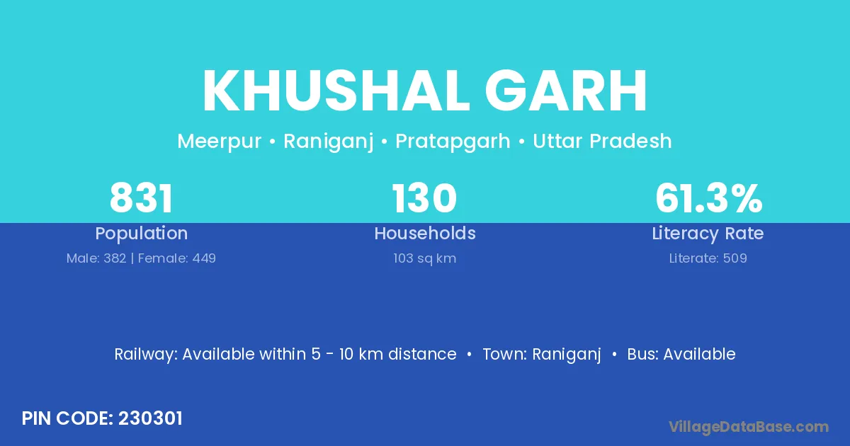 According to Census 2011 information, the village code of Khushal Garh village is 230301.
