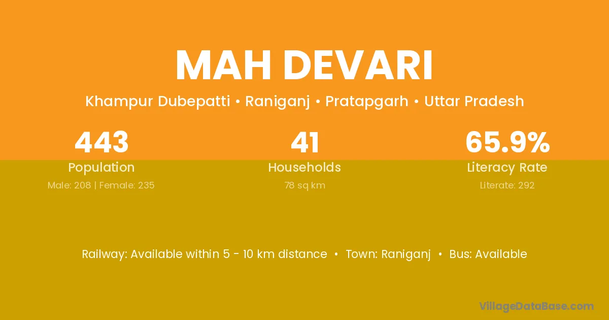 Raniganj is the nearest town to Mah Devari village for major economic activities