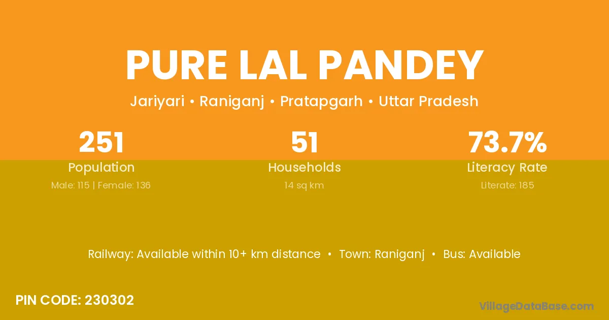 Pure Lal Pandey village has a total population of 251 people, of which 115 are males and 136 are females.