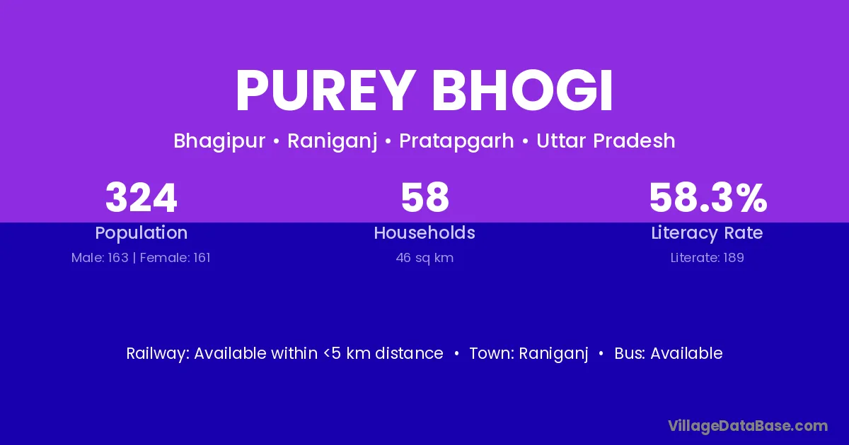 Purey Bhogi village has a total population of 324 people, of which 163 are males and 161 are females.