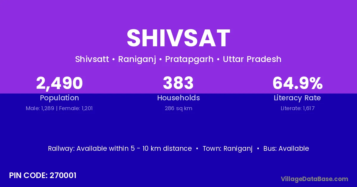 Shivsat village has a total population of 2,490 people, of which 1,289 are males and 1,201 are females.