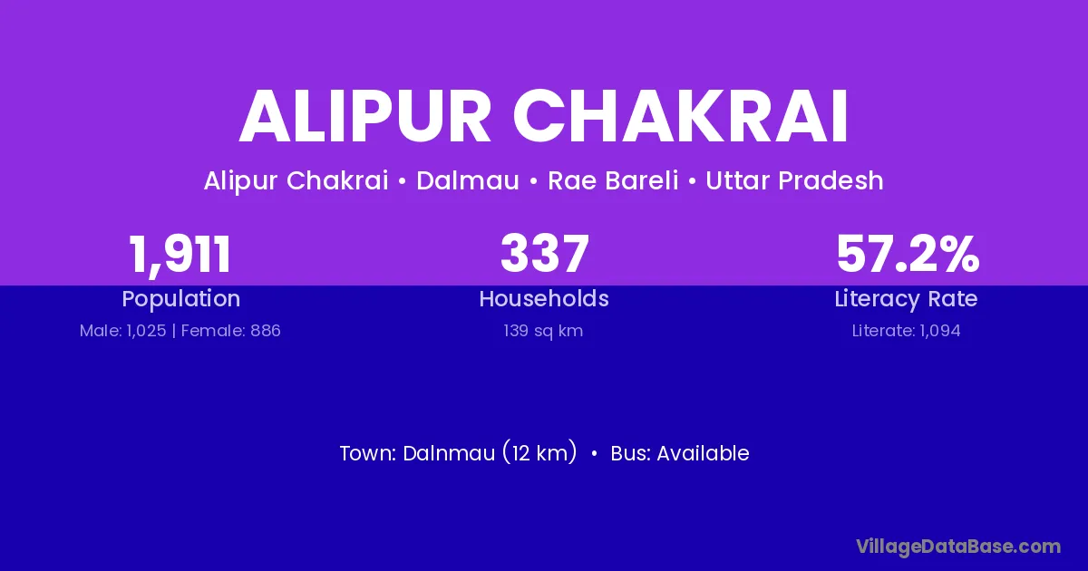 Dalnmau (12 km) is the nearest town to Alipur Chakrai village for major economic activities and is located approximately 12 km away.