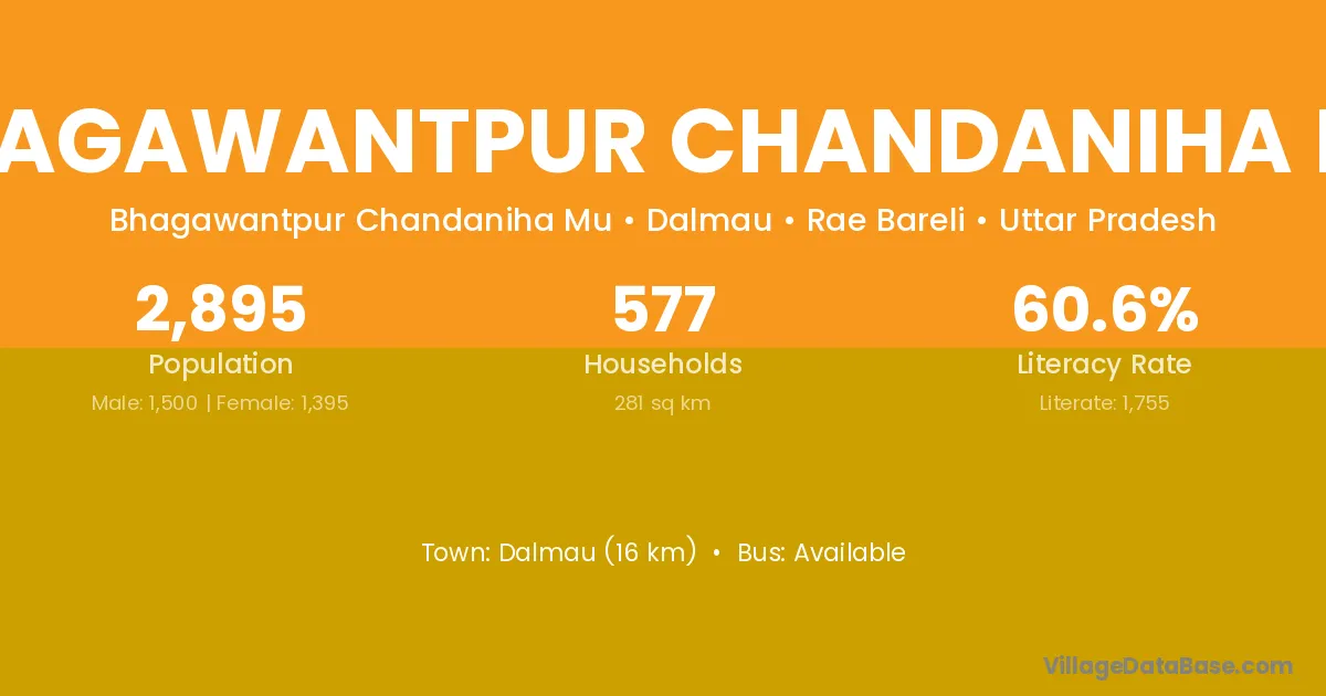 Dalmau (16 km) is the nearest town to Bhagawantpur Chandaniha Mu village for major economic activities and is located approximately 16 km away.