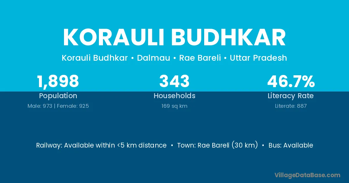 Rae Bareli (30 km) is the nearest town to Korauli Budhkar village for major economic activities and is located approximately 30 km away.
