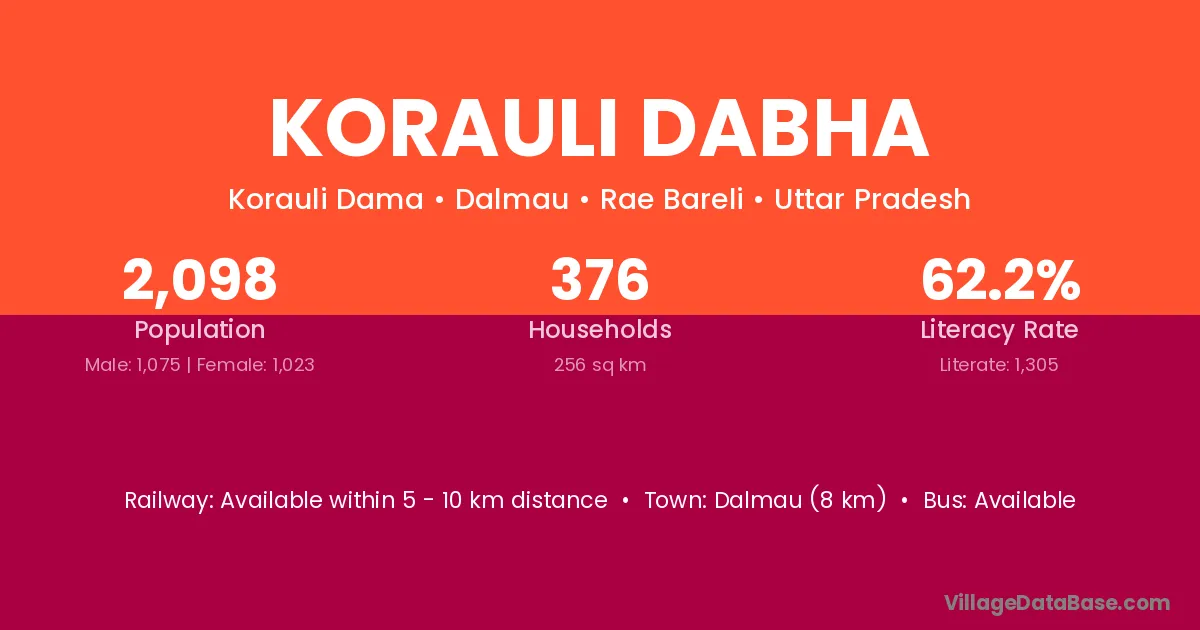 Dalmau (8 km) is the nearest town to Korauli Dabha village for major economic activities and is located approximately 8 km away.