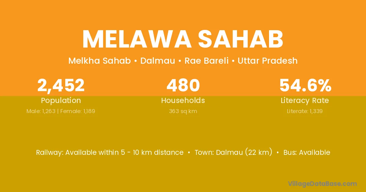 Dalmau (22 km) is the nearest town to Melawa Sahab village for major economic activities and is located approximately 22 km away.