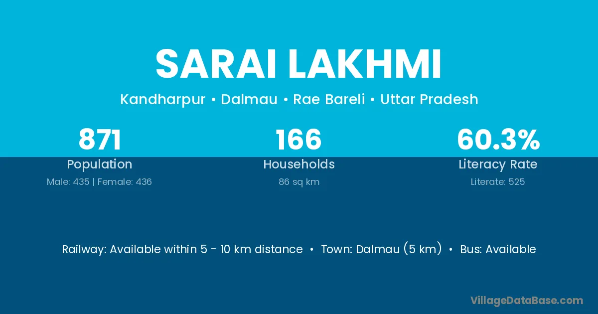 Dalmau (5 km) is the nearest town to Sarai Lakhmi village for major economic activities and is located approximately 5 km away.