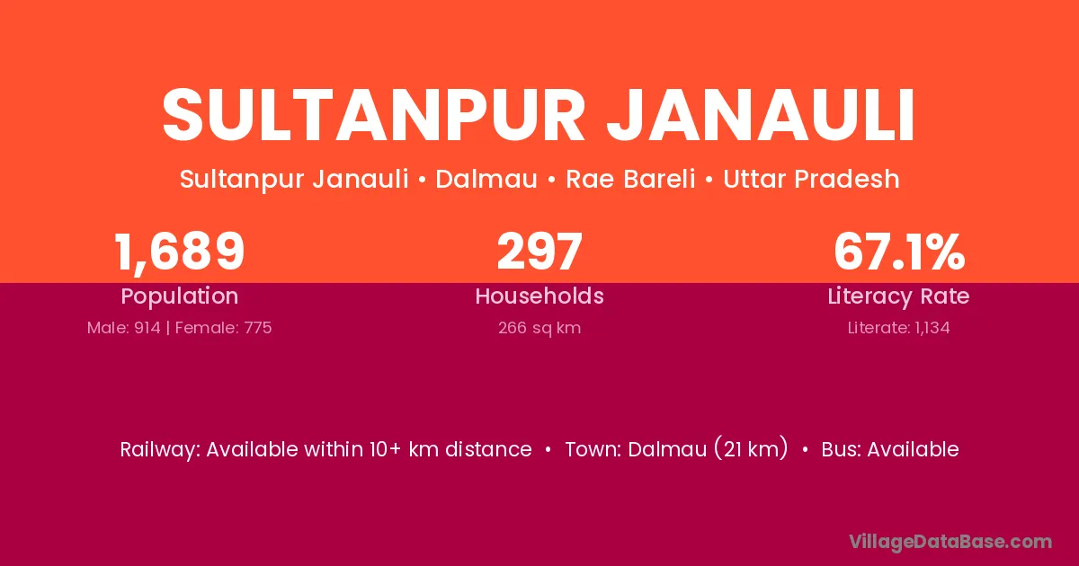 Dalmau (21 km) is the nearest town to Sultanpur Janauli village for major economic activities and is located approximately 21 km away.