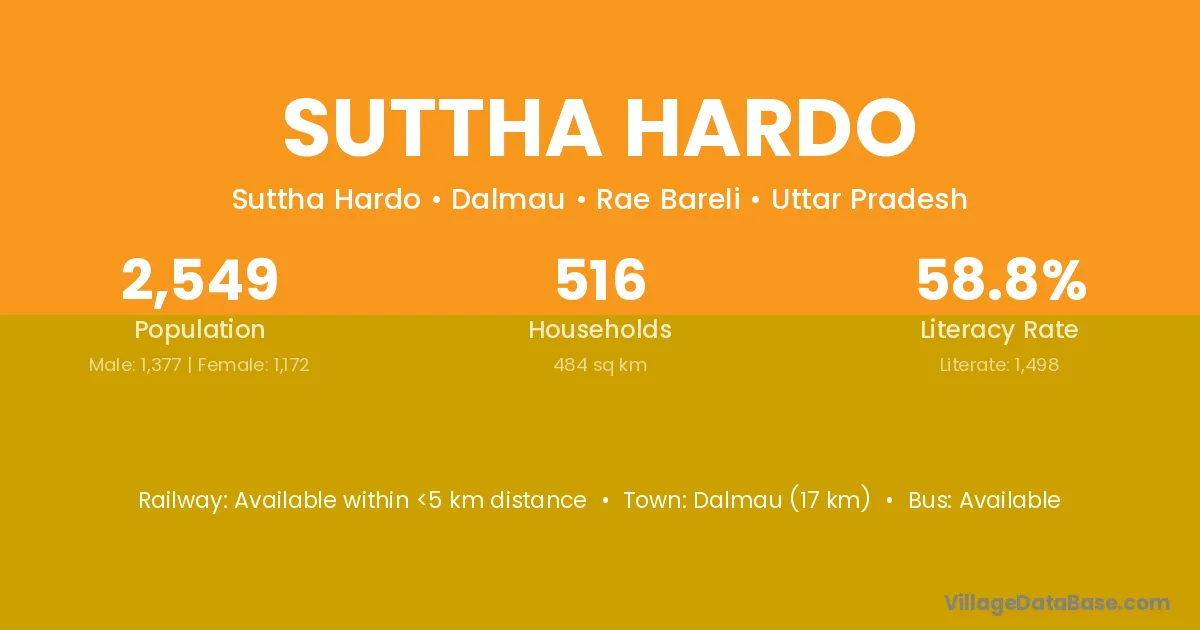 Dalmau (17 km) is the nearest town to Suttha Hardo village for major economic activities and is located approximately 17 km away.