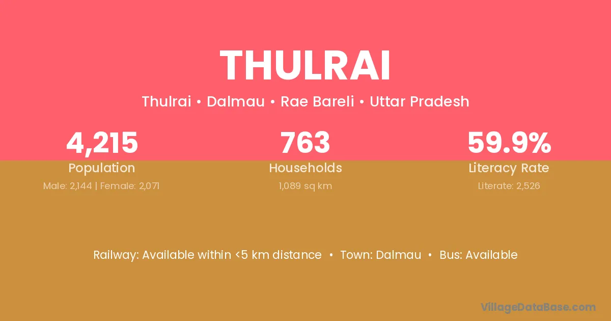 Thulrai village has a total population of 4,215 people, of which 2,144 are males and 2,071 are females.
