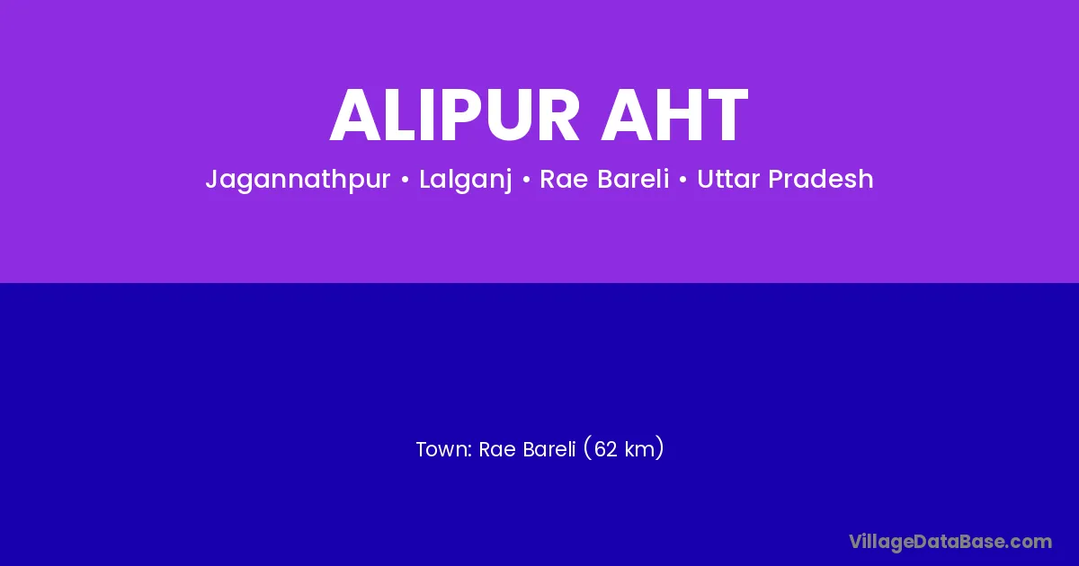 Rae Bareli (62 km) is the nearest town to Alipur Aht village for major economic activities and is located approximately 62 km away.