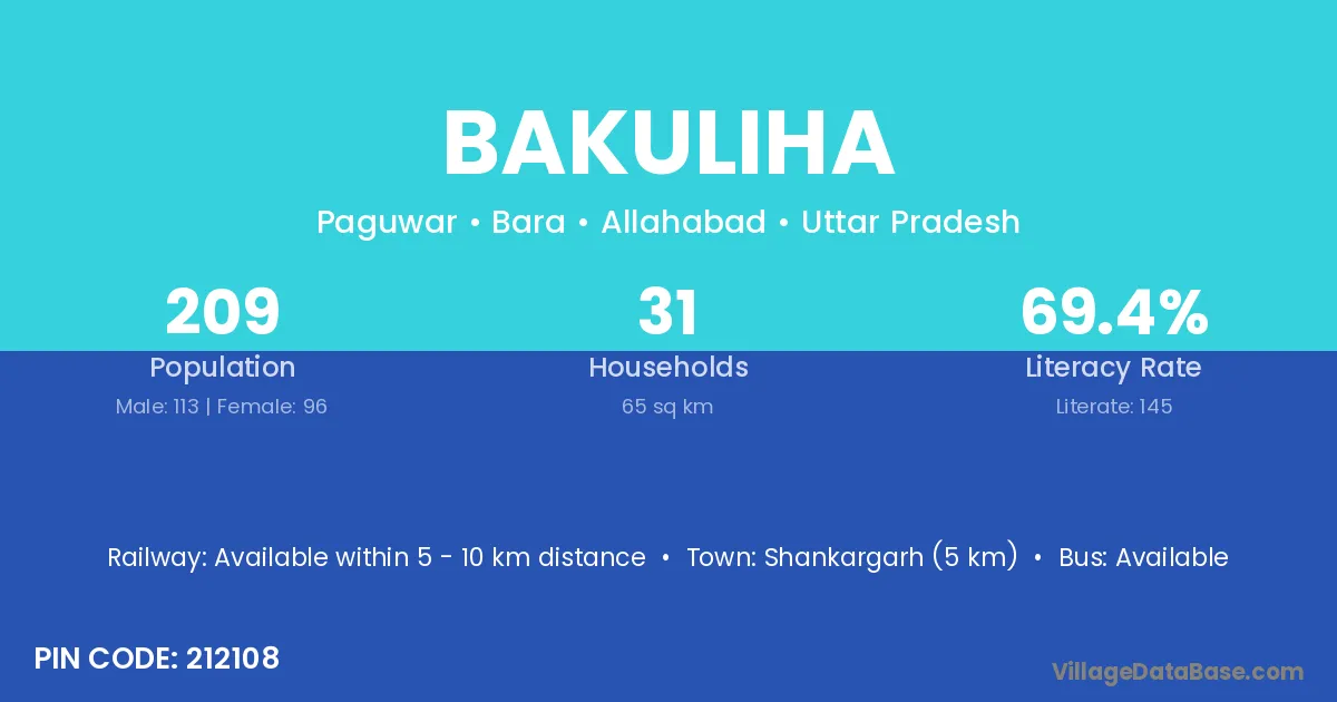 Rae Bareli (18 km) is the nearest town to Bakuliha village for major economic activities and is located approximately 18 km away.