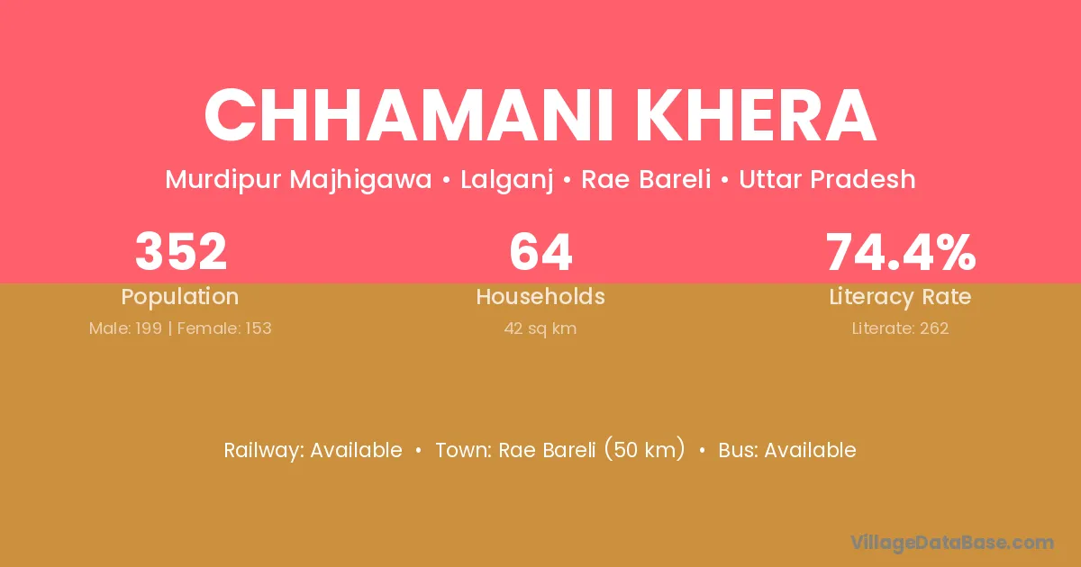 Rae Bareli (50 km) is the nearest town to Chhamani Khera village for major economic activities and is located approximately 50 km away.