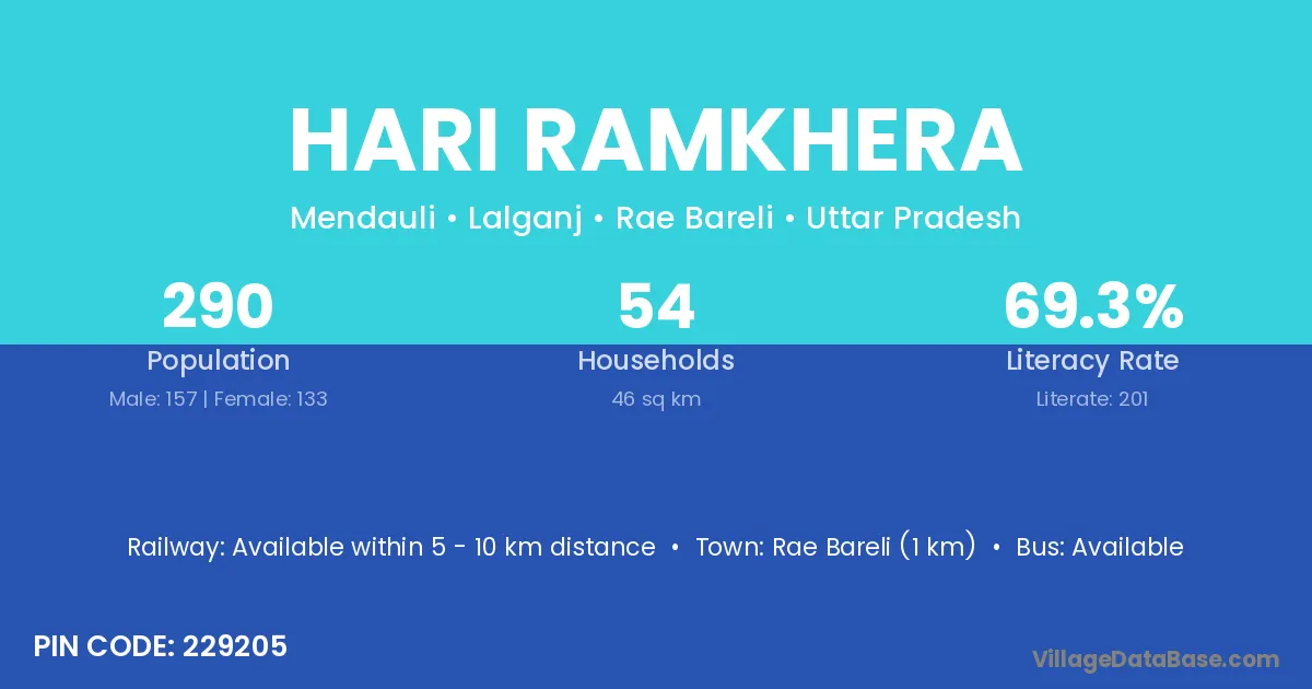Rae Bareli (1 km) is the nearest town to Hari Ramkhera village for major economic activities and is located approximately 1 km away.