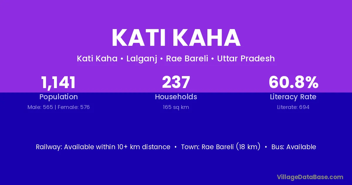 Rae Bareli (18 km) is the nearest town to Kati Kaha village for major economic activities and is located approximately 18 km away.