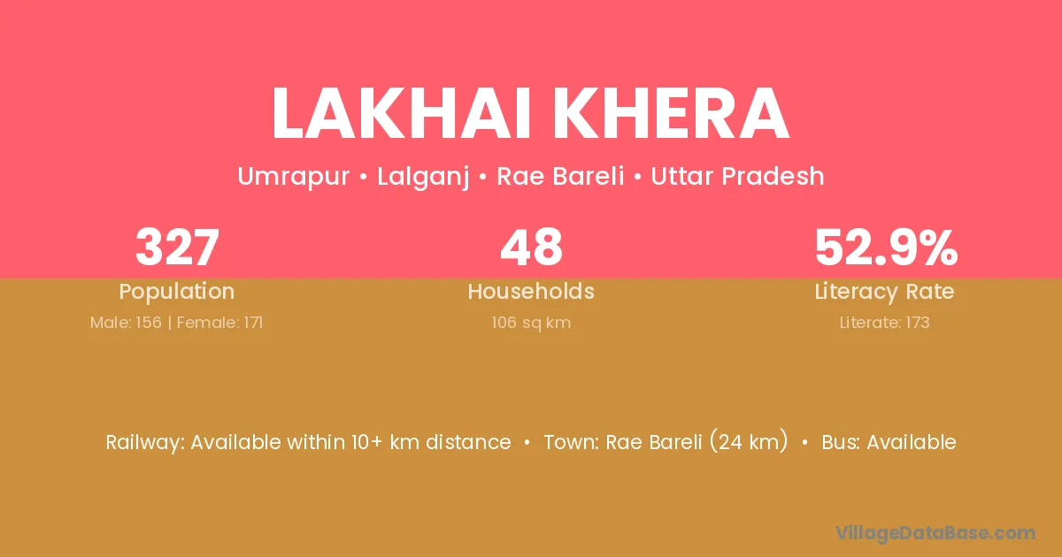 Rae Bareli (24 km) is the nearest town to Lakhai Khera village for major economic activities and is located approximately 24 km away.