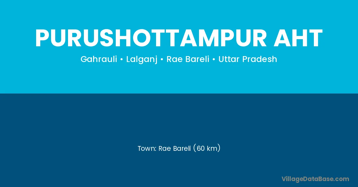 Rae Bareli (60 km) is the nearest town to Purushottampur Aht village for major economic activities and is located approximately 60 km away.