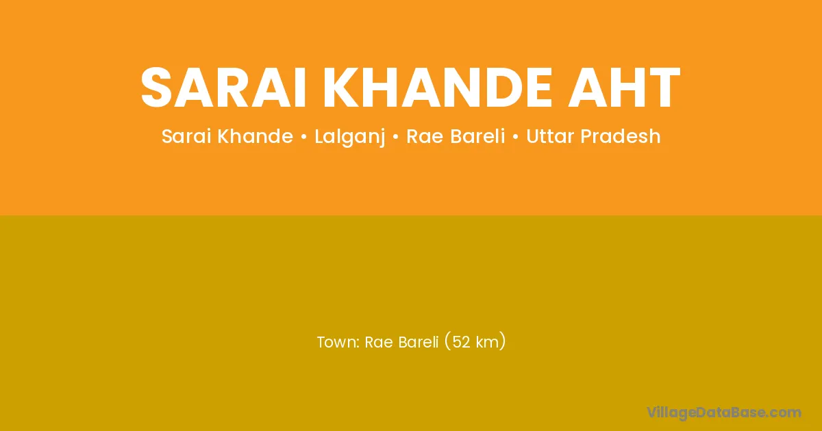 Rae Bareli (52 km) is the nearest town to Sarai Khande Aht village for major economic activities and is located approximately 52 km away.