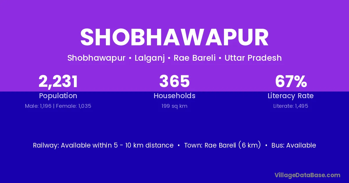 Rae Bareli (6 km) is the nearest town to Shobhawapur village for major economic activities and is located approximately 6 km away.