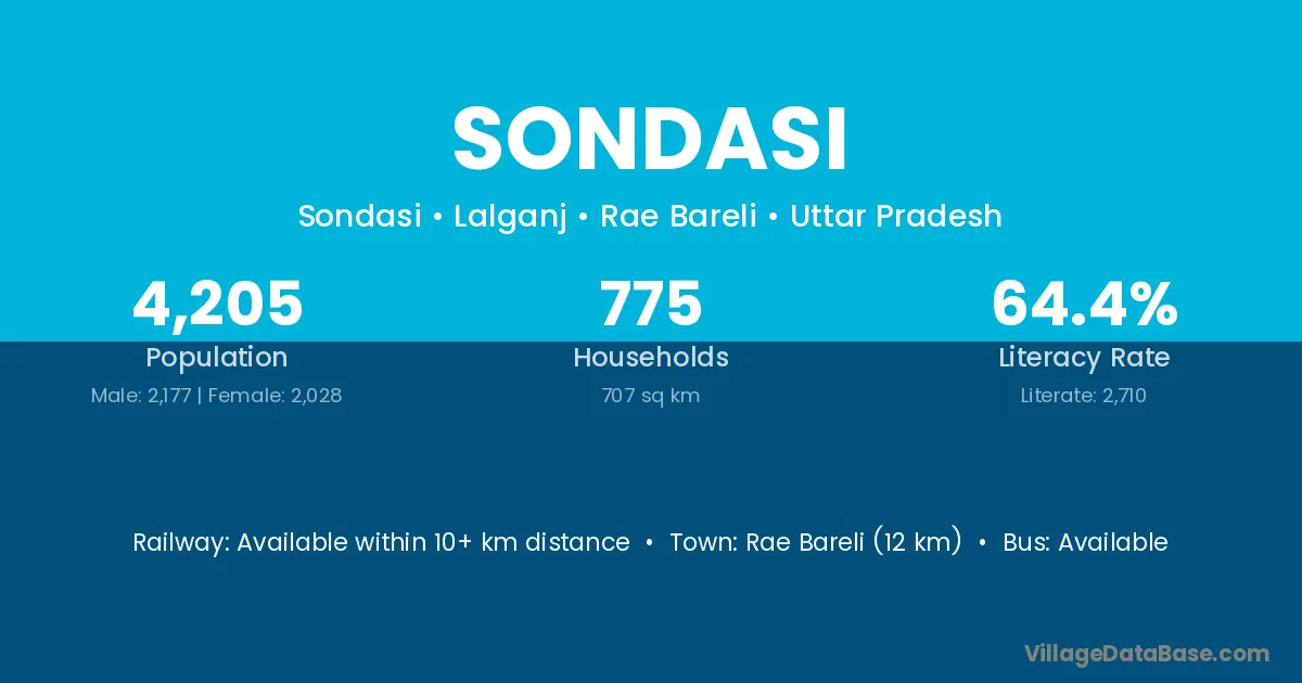 Rae Bareli (12 km) is the nearest town to Sondasi village for major economic activities and is located approximately 12 km away.