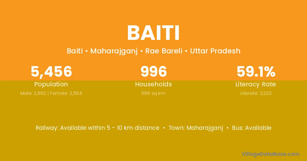 Maharajganj is the nearest town to Baiti village for major economic activities