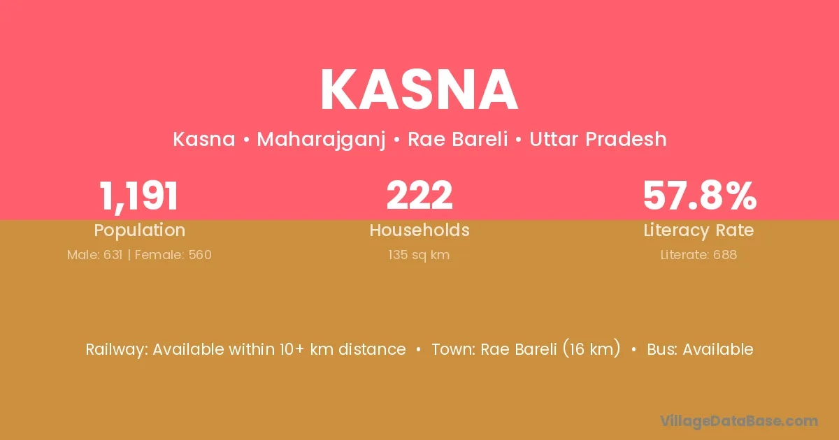 Rae Bareli (16 km) is the nearest town to Kasna village for major economic activities and is located approximately 16 km away.