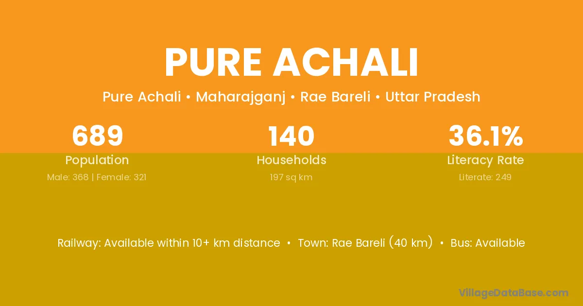 Rae Bareli (40 km) is the nearest town to Pure Achali village for major economic activities and is located approximately 40 km away.