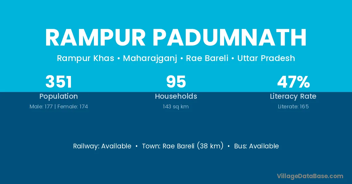 Rae Bareli (38 km) is the nearest town to Rampur Padumnath village for major economic activities and is located approximately 38 km away.