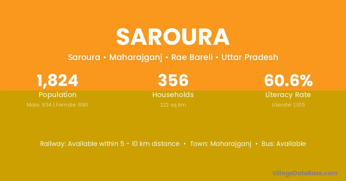 Maharajganj is the nearest town to Saroura village for major economic activities