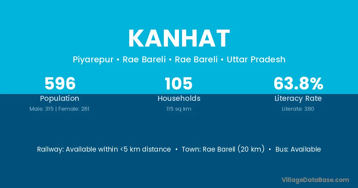 Rae Bareli (20 km) is the nearest town to Kanhat village for major economic activities and is located approximately 20 km away.