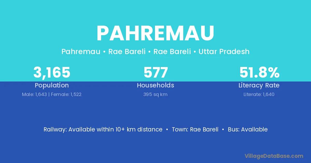 Rae Bareli is the nearest town to Pahremau village for major economic activities