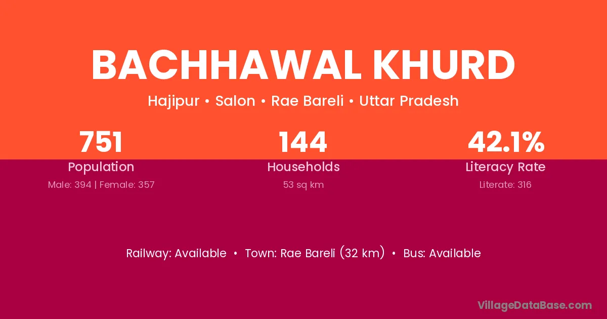 Bachhawal Khurd village has a total population of 751 people, of which 394 are males and 357 are females.