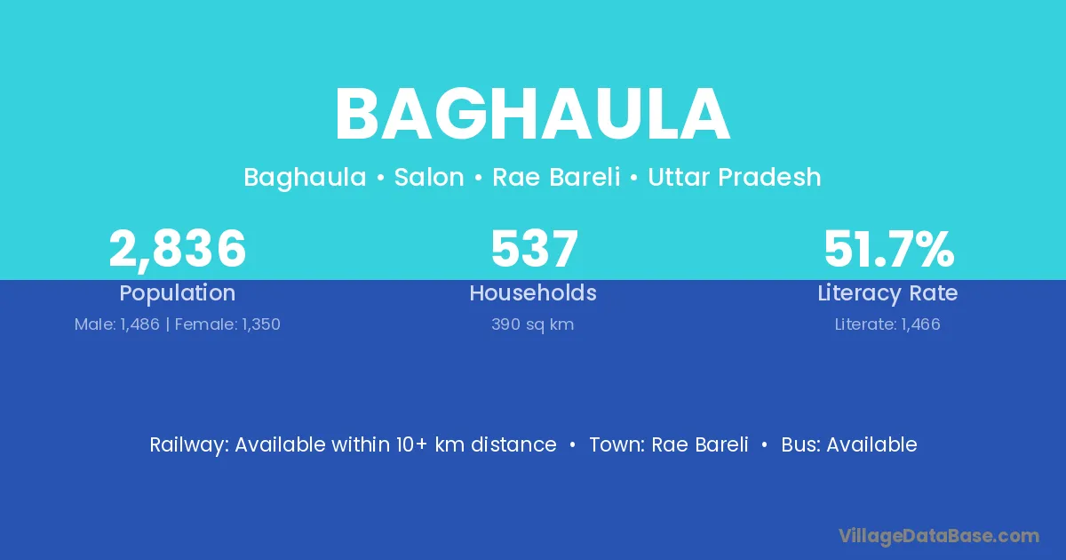 There are approximately 537 households in Baghaula village.