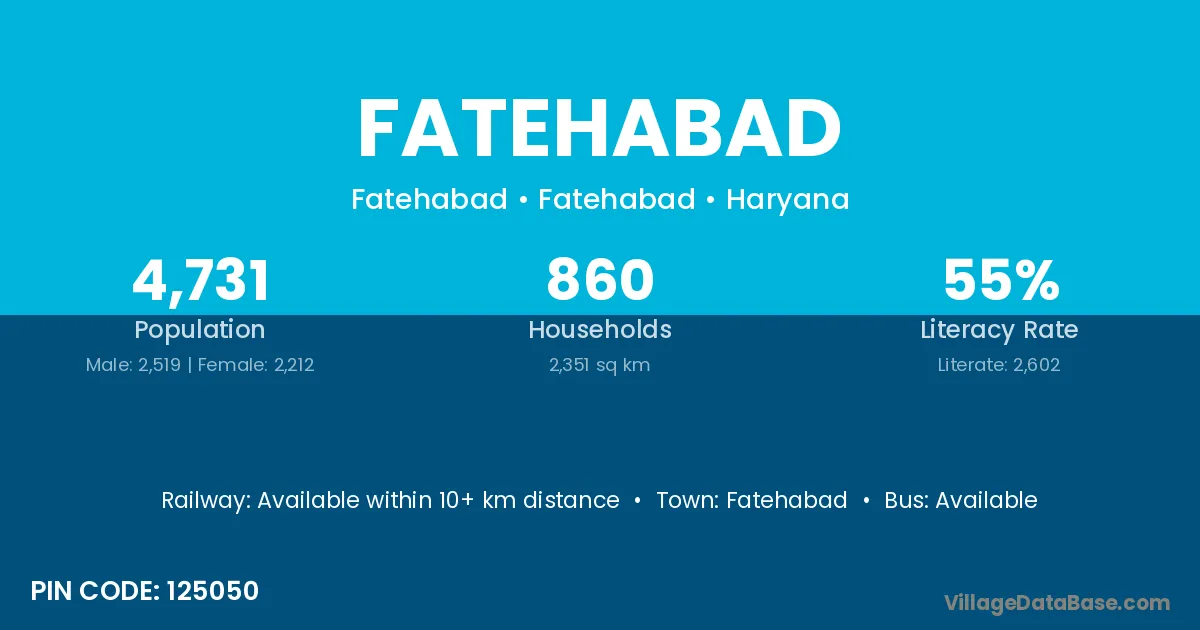 Fatehabad village has a total population of 489 people, of which 249 are males and 240 are females.