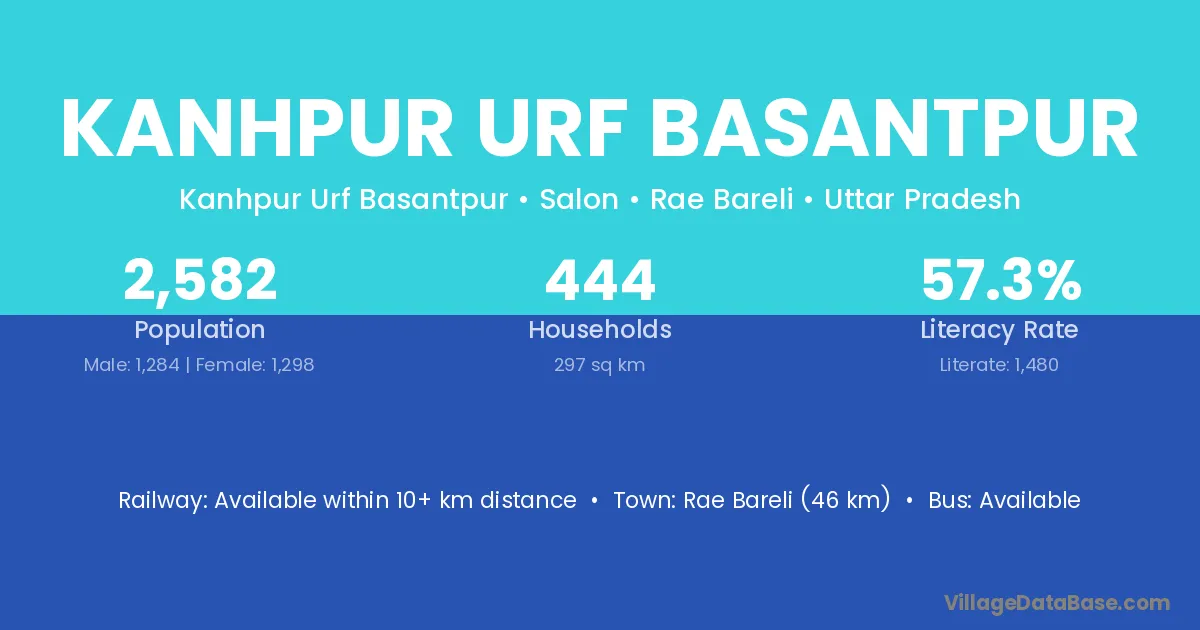 Kanhpur Urf Basantpur village has a total population of 2,582 people, of which 1,284 are males and 1,298 are females.