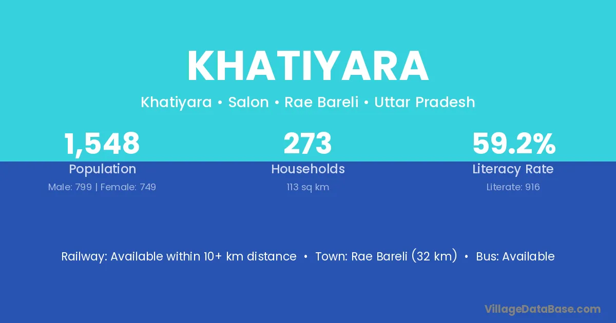 Rae Bareli (32 km) is the nearest town to Khatiyara village for major economic activities and is located approximately 32 km away.